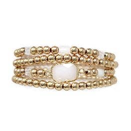 Set of 4 Gold Beaded and White Rectangle Stone Stretch Bracelets