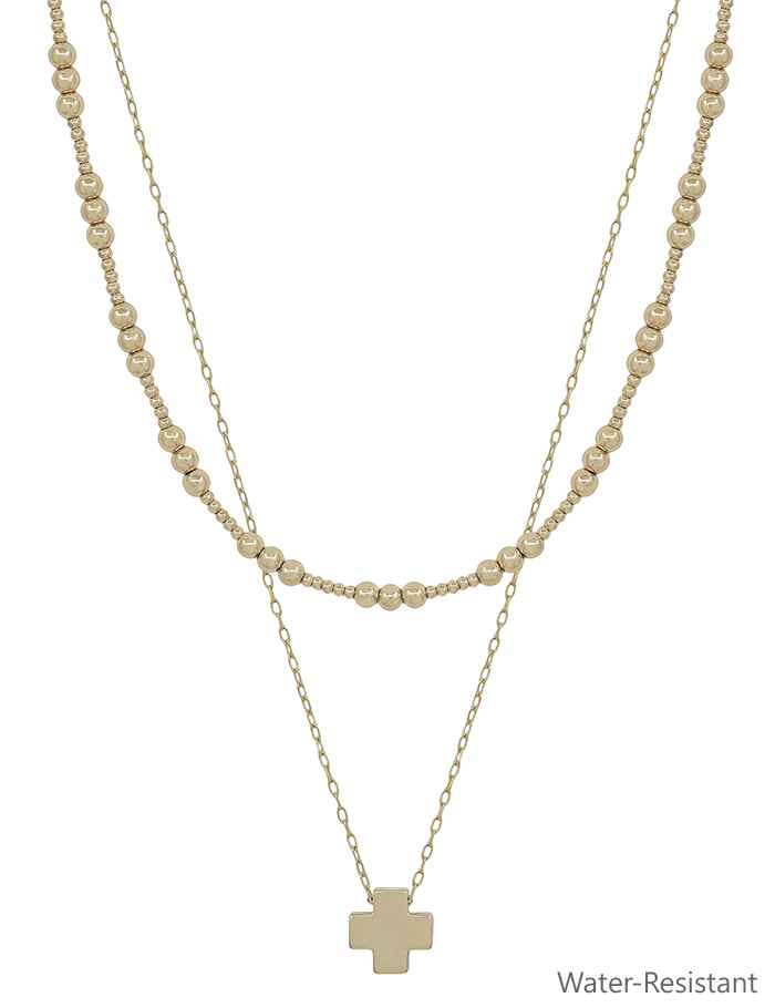 This necklace is not just a piece of jewelry, but a stylish accessory. Its water-resistant feature ensures durability. The 4mm beaded design combined with the gold cross layered look creates a striking balance between sophistication and style. It's more than a necklace; it's a fashion accessory.
