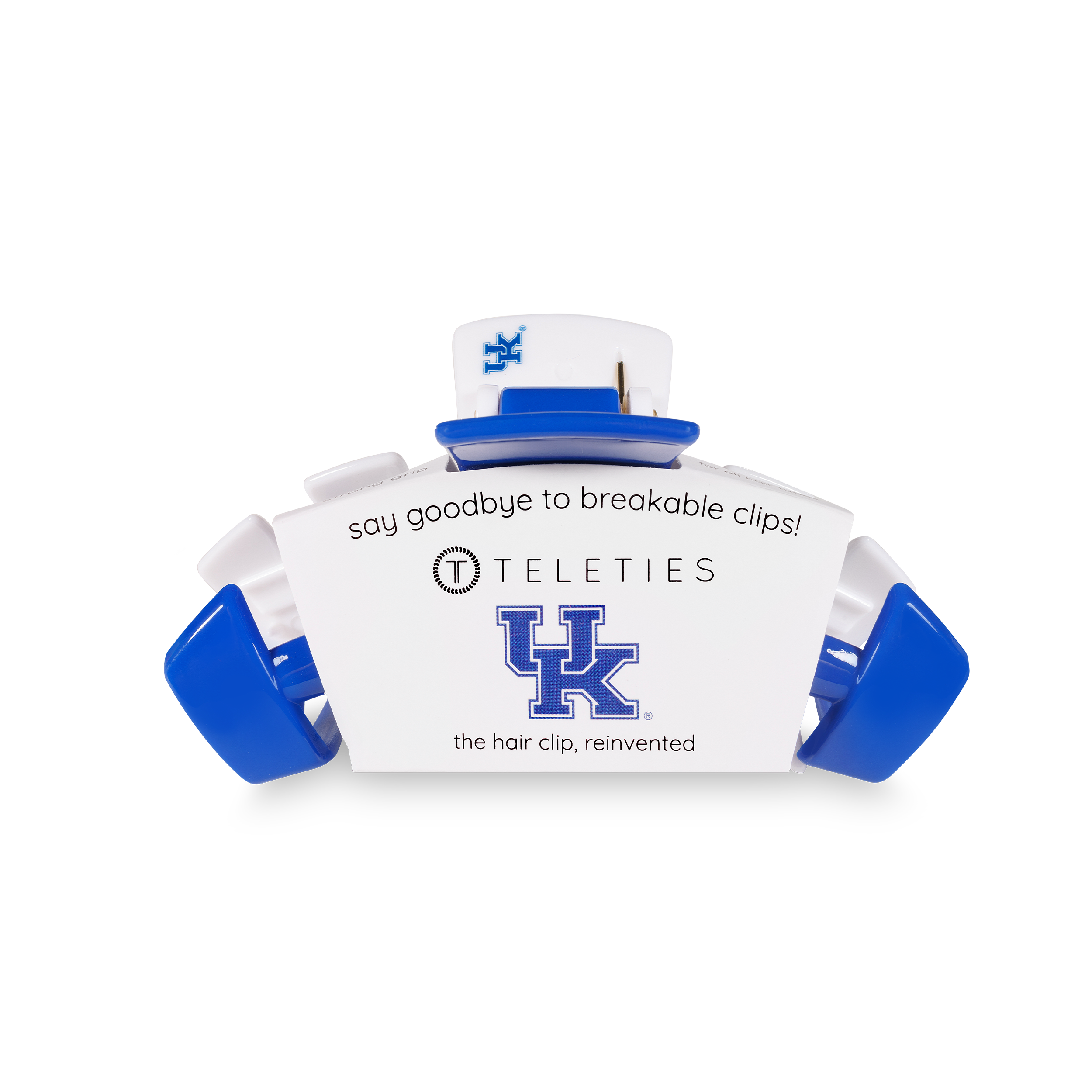 Say goodbye to breakable clips! We have perfected the hair tie and now have re-invented the clip. Each hair clip has bendable teeth that take back to shape, they work on all hair types and have a strong hold. Hold your hair and enhance your style with the new University of Kentucky TELETIES hair Clip! Go Cats!